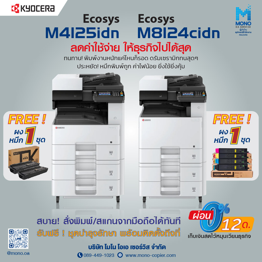เรียนรู้เพิ่มเติมรับฟรีหมึกแท้จาก Kyocera มูลค่า 5,000 บาท เมื่อซื้อหรือเช่าเครื่องถ่ายเอกสารรุ่นใดก็ได้